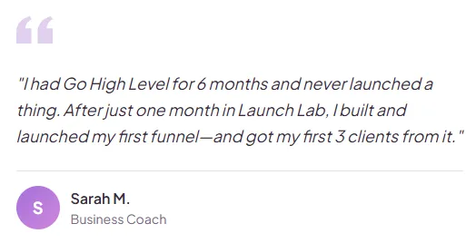 This isn't just another course you buy and forget. Launch Lab is a living, breathing community of GHL Users, SaaSpreneurs, coaches, and creators who are in it together.